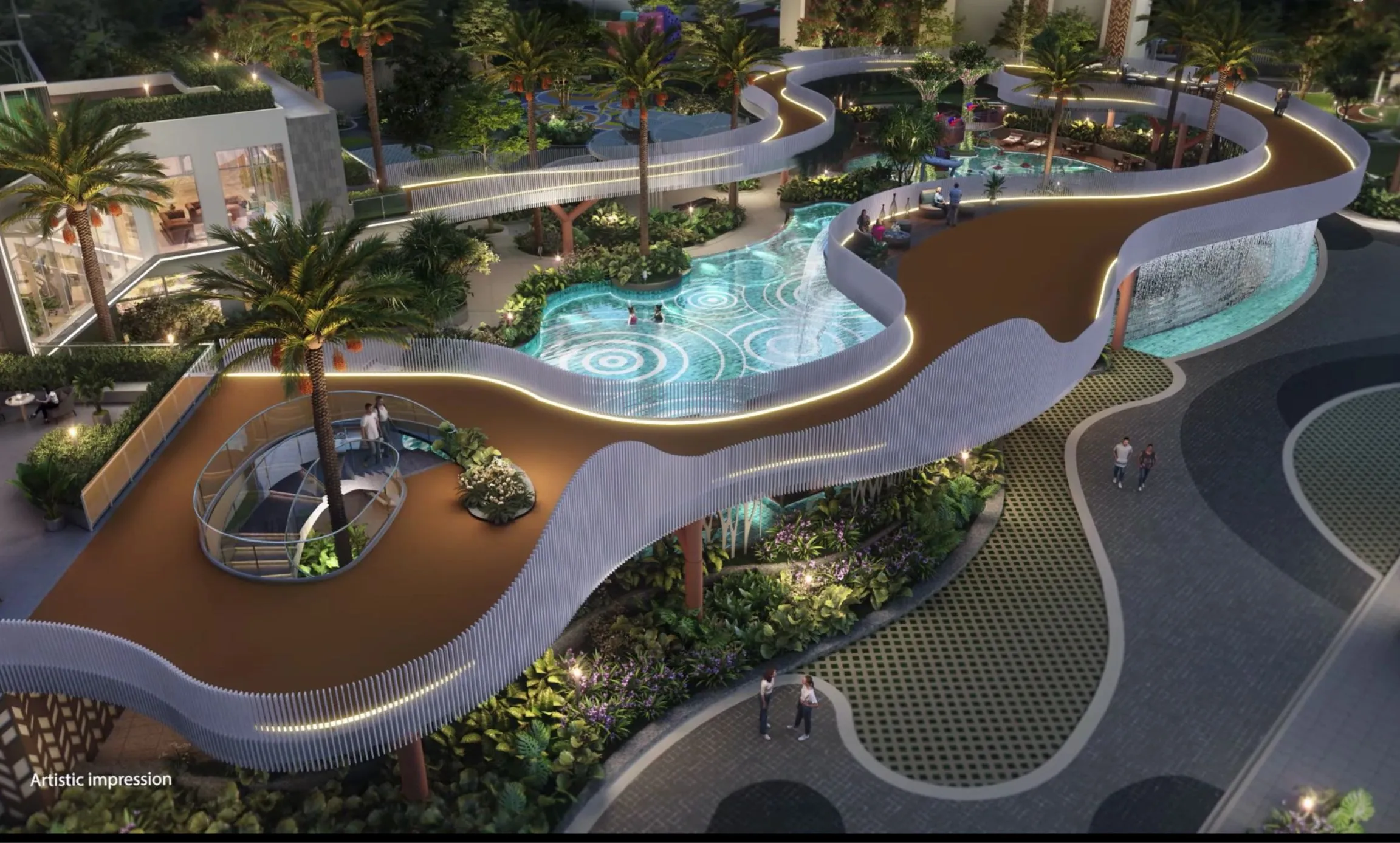 Experience 70% open greens, themed gardens, and water features — blending city life with nature’s calm.